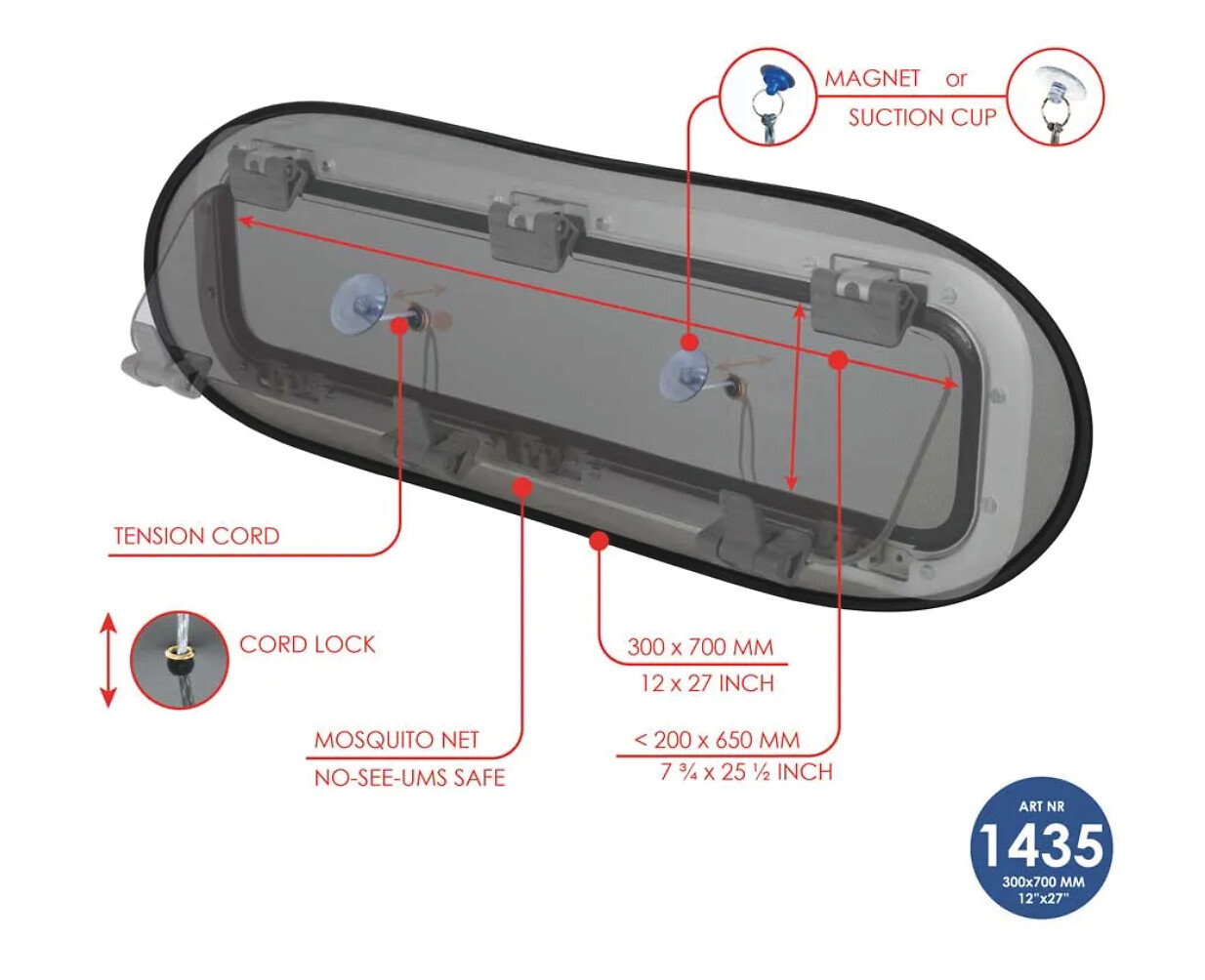 Maritim venetarvikkeet » Kansihelat » Kansiluukut, ikkunat ja verhot » Hyttysverkot » HYTTYSVERKKO IKKUNALLE L HYTTYSVERKKO IKKUNALLE L Yleismallinen hyttysverkko, joka sopii kaikkien merkkien ikkunoihin. Kiinnitetään veneen sisäpuolelta imukupilla tai magneetilla. Imukuppi tai magneetti kiinnitetään naruun, joka pitää verkon runkoa kohti. Soveltuu ikkunoille, joiden sisämitta on maksimissaan 200 x 650 mm. Hyttysverkon on oltava suurempi, jotta se peittää reiän. Tämän takia verkko soveltuu hyvin monen kokoisille ikkunoille. Se soveltuu myös eri muotoisiin ikkunoihin: suorakaide, ovaali ja pyöreäkulmainen. Lisätiedot › 39,00 € Määrä Lisää ostoskoriin Saatavuus Varastossa (3 kpl) Nopea toimitus 14 päivän palautusoikeus Kaikki yli 150 € tilaukset rahtivapaasti Nöytä toimituskuluarvio Tuotekuvaus • Sopii ikkunoille, joiden sisämitta on enintään 200 x 650 mm • Nopea asennus imukupin tai magneetin kanssa• Helppo varastoida, taittuu 1/3 kokoon • Sopii kaiken merkkisiin ikkunoihin • Kiinnitys sisäpuolelta Pakkauskoko 1 Kpl Näytä lisää tuotteitaHyttysverkot tuoteryhmästä