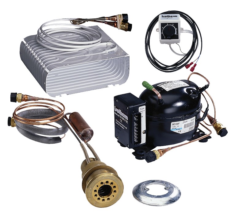 Maritim venetarvikkeet » Kylmä, vesi ja ilmastointi » Jääkaapit ja pakastimet » Kylmäkoneistot » JÄÄHDYTINKONEISTO PIENI JÄÄHDYTINKONEISTO PIENI Vesijäähdytteinen kylmäkoneisto perinteisellä termostaattiohjauksella. Vesijäähdytyksen etuna on tehokkaampi jäähdytys ja hiljaisempi käyntiääni. Sarja sisältää O-mallisen peltihöyrystimen, Secop 12/24 V BD35 -kompressorin, erityisen pohjaläpiviennin, jonka avulla kompressorin keräämä lämpö johdetaan veneen ulkopuolella ympäröimään veteen, sinkkianodin sekä koteloidun termostaattikatkaisimen. Höyrystin 240 x 210 x 85 mm, maks. 125 litraiselle kylmälaatikolle. Lisätiedot › 1 208,00 € Määrä Lisää ostoskoriin Saatavuus Varastossa (1 kpl) Nopea toimitus 14 päivän palautusoikeus Kaikki yli 150 € tilaukset rahtivapaasti Nöytä toimituskuluarvio Tuotekuvaus • 12 V/24 V • Keskimääräinen virrankulutus 0,65 A, maksimissaan 2,5A• BD35F -kompressori• SP-laite jääkaapille 125 litraan asti• SP-laite pakastimelle 40 litraan asti • Kompressorin mitat 135 x 210 x 155 mm• Höyrystimen mitat 240 x 85 x 210 mm• O-höyrystimellä varustettu malli• Paino 11 kg Pakkauskoko 1 Kpl Näytä lisää tuotteitaKylmäkoneistot tuoteryhmästä