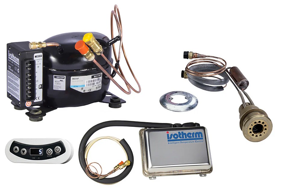 Maritim venetarvikkeet » Kylmä, vesi ja ilmastointi » Jääkaapit ja pakastimet » Kylmäkoneistot » KYLMÄJÄRJESTELMÄ KYLMÄJÄRJESTELMÄ Isotherm SP on purje- ja moottoriveneisiin tarkoitettu vesijäähdytteinen kylmäjärjestelmä. Kompressorin keräämä lämpö johdetaan erityisen pohjaläpiviennin kautta veneen ympäröimään veteen. Ainutlaatuinen toteutus vähentää virrankulutusta. Laite on myös erittäin hiljainen, sillä siinä ei ole tuuletinta tai pumppua. Lisätiedot › 1 955,00 € Määrä Lisää ostoskoriin Saatavuus Varastossa (3 kpl) Nopea toimitus 14 päivän palautusoikeus Kaikki yli 150 € tilaukset rahtivapaasti Nöytä toimituskuluarvio Tuotekuvaus • Järjestelmässä 12/24 V Secop BD35F -kompressori ASU-elektroniikalla• Kompressorin mitat: 135 x 210 x 55 mm • Maksimi virrankulutus 4,8A • Ruostumattoman kylmävaraajan mitat: 300 x 210 x 60 mm• Järjestelmän paino 15 kg Pakkauskoko 1 Kpl Näytä lisää tuotteitaKylmäkoneistot tuoteryhmästä