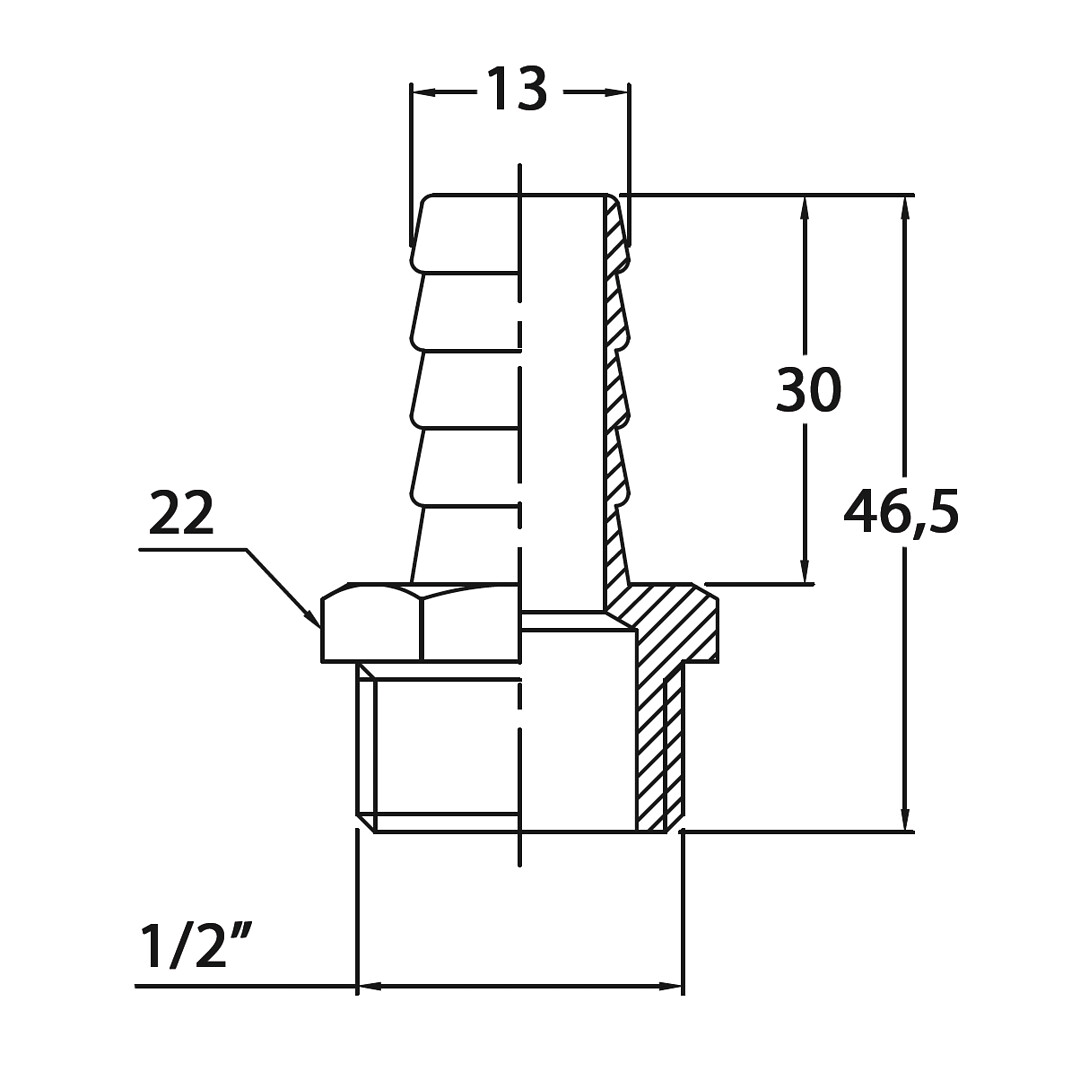 Maritim venetarvikkeet » Kylmä, vesi ja ilmastointi » Messinki » LETKURUUVIKE 1/2''x 13MM CR MESSINKI