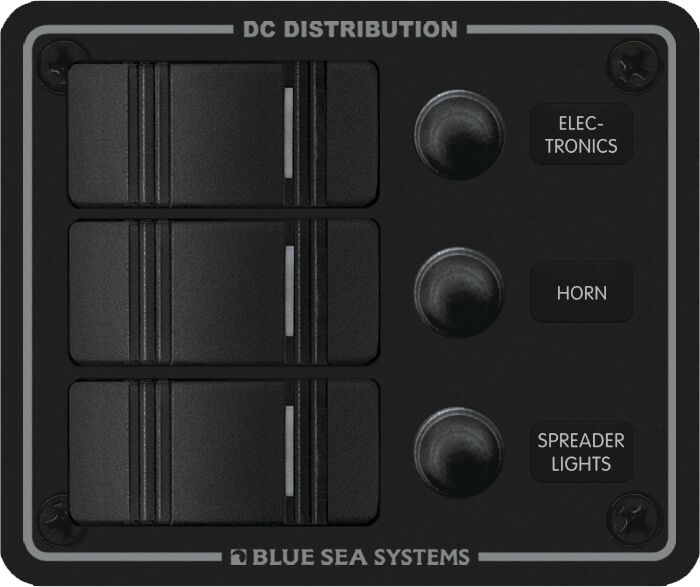 Maritim venetarvikkeet » Sähkö » Sähkötarvikkeet » Katkaisinpaneelit » KATKAISINPANEELI AUTOMAATTISULAKKEELLA, 3 KATKAISINTA KATKAISINPANEELI AUTOMAATTISULAKKEELLA, 3 KATKAISINTA Alumiinirunkoinen, vesitiivis katkaisijapaneeli on suunniteltu flybridge-ohjaamoihin ja avotiloihin. Paneelin etupuoli on IP66-luokiteltu, joten se kestää voimakasta vesikuormitusta. Rakenne on syttymissuojattu, mikä tekee siitä turvallisen myös bensiinikäyttöisiin veneisiin.Varustettu ON-OFF Contura-kytkimillä, joissa on LED-merkkivalo käyttötilan osoittamiseen. Jokainen piiri on suojattu vesitiiviillä painonapilla nollattavalla katkaisijalla. Mukana vesitiiviit asennustiivisteet. Lisätiedot › 174,00 € Määrä Lisää ostoskoriin Saatavuus Varastossa (25 kpl) Nopea toimitus 14 päivän palautusoikeus Kaikki yli 150 € tilaukset rahtivapaasti Nöytä toimituskuluarvio Tuotekuvaus TEKNISET TIEDOT:Vedenkesto: VedenkestäväKytkimien määrä: 3Nimellisjännite: 12V DC | 24V DCPaneelin kumulatiivinen virrankesto: 45AKytkimen virrankesto: 20A @ 12V DC | 15A @ 24V DCPaino: 0.43 kg Pakkauskoko 1 Kpl Näytä lisää tuotteitaKatkaisinpaneelit tuoteryhmästä