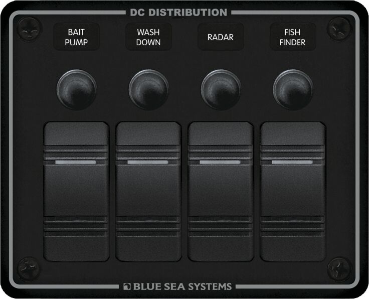 Maritim venetarvikkeet » Sähkö » Sähkötarvikkeet » Katkaisinpaneelit » KATKAISINPANEELI AUTOMAATTISULAKKEELLA, 4 KATKAISINTA KATKAISINPANEELI AUTOMAATTISULAKKEELLA, 4 KATKAISINTA Alumiinirunkoinen, vesitiivis katkaisijapaneeli on suunniteltu flybridge-ohjaamoihin ja avotiloihin. Paneelin etupuoli on IP66-luokiteltu, joten se kestää voimakasta vesikuormitusta. Rakenne on syttymissuojattu, mikä tekee siitä turvallisen myös bensiinikäyttöisiin veneisiin.Varustettu ON-OFF Contura-kytkimillä, joissa on LED-merkkivalo käyttötilan osoittamiseen. Jokainen piiri on suojattu vesitiiviillä painonapilla nollattavalla katkaisijalla. Mukana vesitiiviit asennustiivisteet. Lisätiedot › 209,00 € Määrä Lisää ostoskoriin Saatavuus Varastossa (3 kpl) Nopea toimitus 14 päivän palautusoikeus Kaikki yli 150 € tilaukset rahtivapaasti Nöytä toimituskuluarvio Tuotekuvaus TEKNISET TIEDOT:Vedenkesto: Etupaneeli IP66Kytkimien määrä: 4Nimellisjännite: 12V DC | 24V DCPaneelin kumulatiivinen virrankesto: 45AKytkimen virrankesto: 20A @ 12V DC | 15A @ 24V DCPaino: 0.43 kg Pakkauskoko 1 Kpl Näytä lisää tuotteitaKatkaisinpaneelit tuoteryhmästä