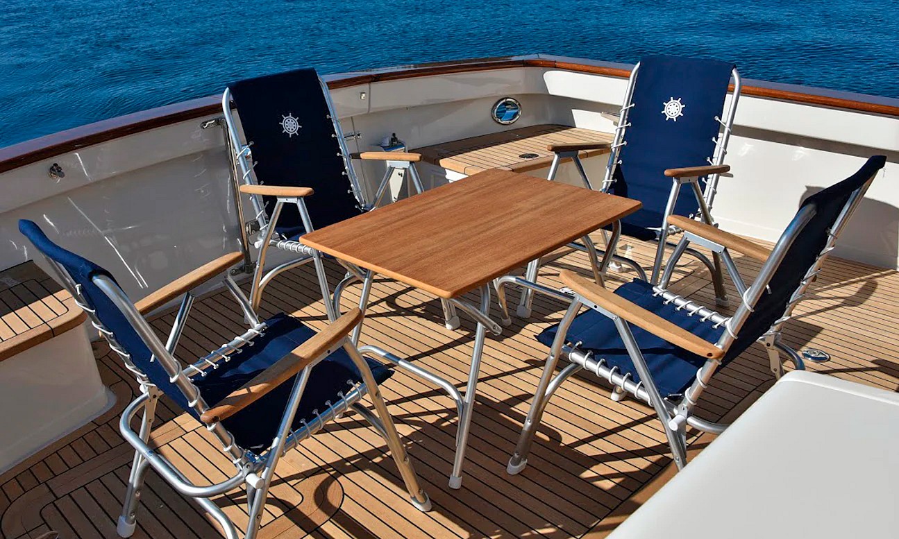 Maritim venetarvikkeet » Sisustus ja lahjatavarat » Kansituolit ja -pöydät » Kansituolit » KANSITUOLI M-150, SININEN KANSITUOLI M-150, SININEN Lisätiedot › 195,00 € Määrä Lisää ostoskoriin Saatavuus Varastossa (20 kpl) Nopea toimitus 14 päivän palautusoikeus Kaikki yli 150 € tilaukset rahtivapaasti Nöytä toimituskuluarvio Tuotekuvaus M150-kansituoli on suunniteltu veneilijöille, jotka arvostavat huolellisesti viimeisteltyä muotoilua ja käyttömukavuutta. Korkea selkänoja ja joustava selkätuki parantavat istuinergonomiaa. Runko on valmistettu erittäin korkealaatuisesta anodisoidusta alumiiniputkesta (ulkohalkaisija 25 mm, seinämäpaksuus 1 mm). Erityinen 5000-sarjan alumiiniseos tuo rakenteeseen vahvuutta ja kestävyyttä merellisissä olosuhteissa.Recacril®-meriluokan kankaat on valmistettu läpivärjätystä akryylikuidusta. Materiaali on kehitetty kestämään suolavettä ja se säilyttää vettähylkivän ominaisuutensa pitkään. Kankaat ovat tunnettuja poikkeuksellisesta kulutuskestävyydestään.Tiikkiset käsinojat sekä ruostumattomat pultit ja mutterit kestävät aikaa ja käyttöä. Istuinkorkeus 38 cm, istuinleveys 47 cm, selkänojan korkeus 60 cm. Käyttäjän enimmäispaino 90 kg. Pakkauskoko 1 Kpl Näytä lisää tuotteitaKansituolit tuoteryhmästä